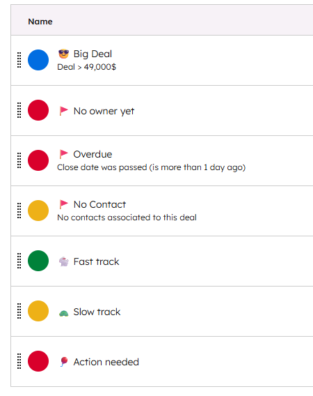 טאג אדום יכול לסמן "דיל תקוע" או "דרוש מעקב מיידי".