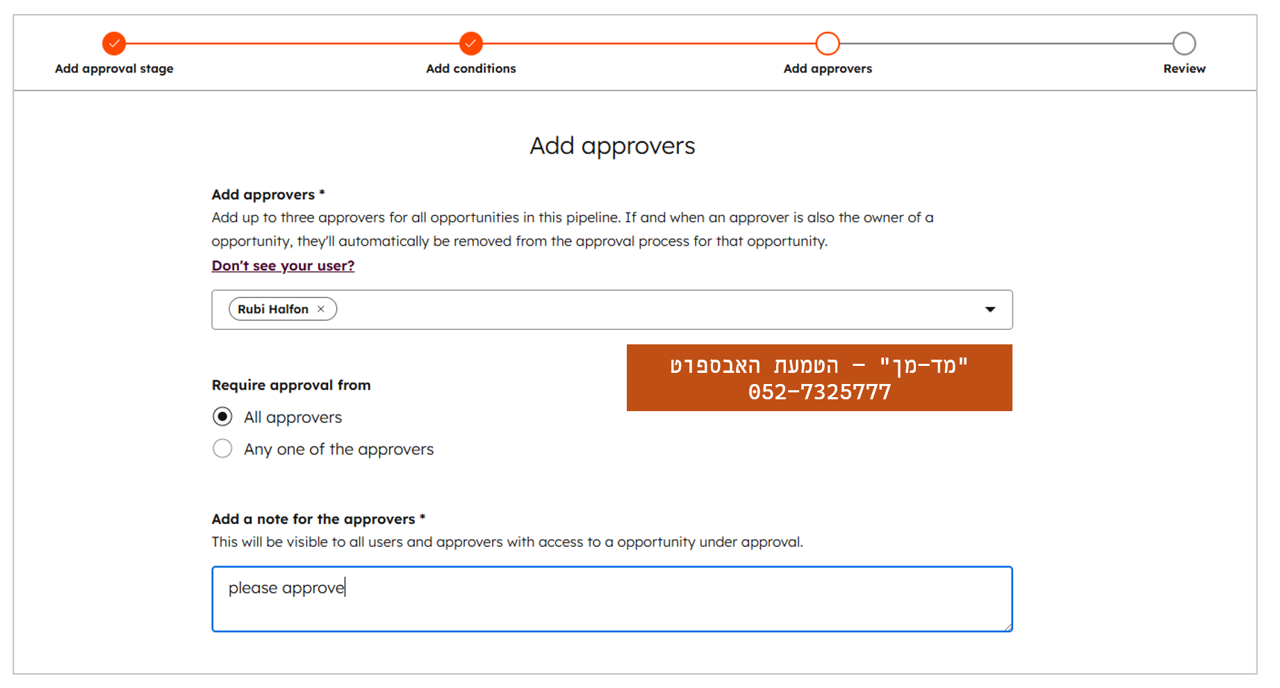 HubSpot מאפשרת להגדיר שלבי אישור אוטומטיים באמצעות workflows, שדות מותאמים ו-approval logic.